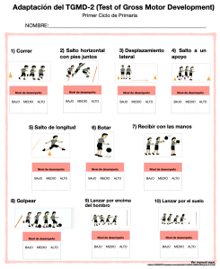 Test para primer ciclo de primaria: TGMD-2 – Descarga – Descarga Excel Registro – Paneles circuito Evaluación de destrezas de movimiento básicas con 10 ejercicios seleccionados y adaptados del Test of Gross Motor Development 2 (TGMD-2).