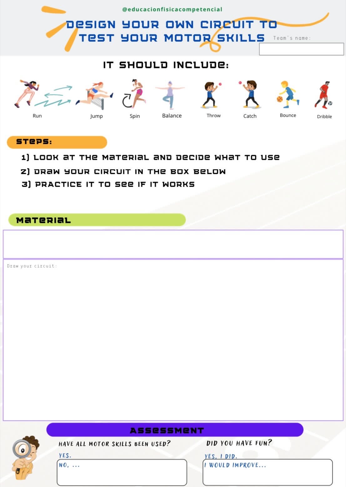 El docente debe evaluar las habilidades motrices básicas de sus escolares, pero ellos también pueden ser partícipes del proceso. Con esta ficha pretendo que tengan un papel activo en su propia evaluación.